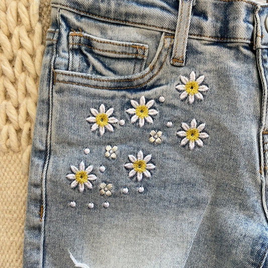 EMBROIDERED FLOWER LIGHT BLUE JEAN SHORT