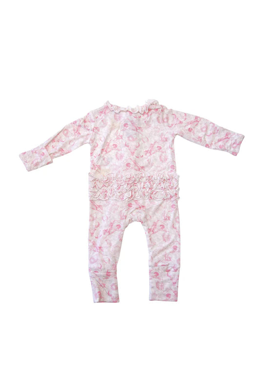 Kids Strawberry Picnic Bamboo Front Zip Onesie W/ Ruffle