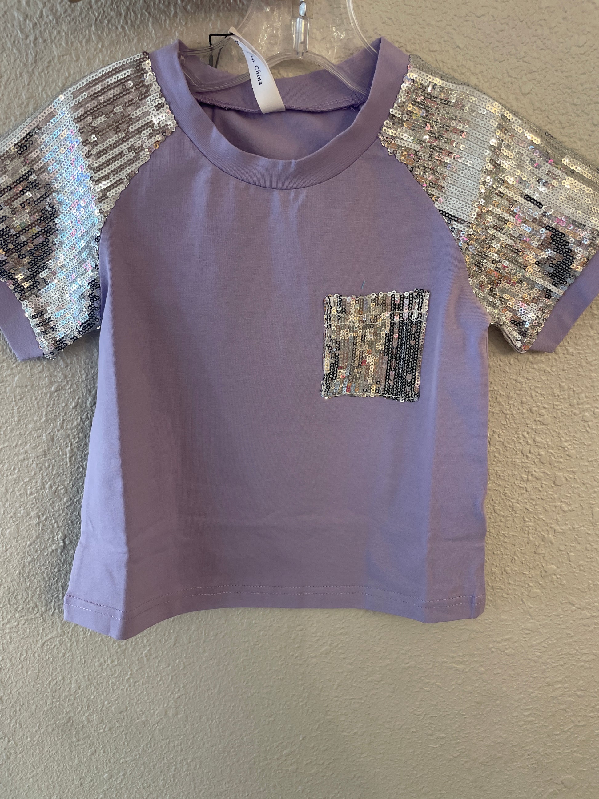 LAVENDER TOP W/ SEQUIN SLEEVE AND POCKET